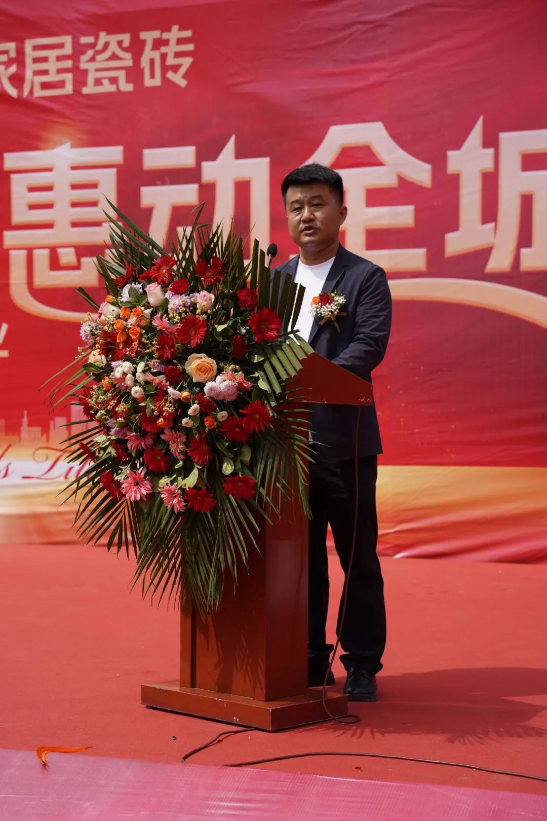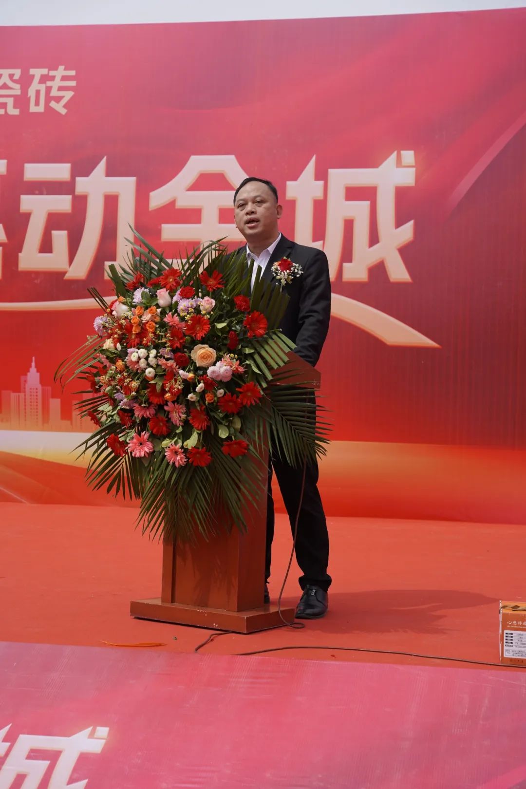 jdb电子游戏平台瓷砖营销总经理陈东荣上台为本次开业盛典致辞,他以诚挚而热烈的态度、远道赴会的经销商伙伴们致以最衷心的欢迎与最深切的谢意。陈总感慨道,jdb电子游戏平台瓷砖如今所取得的成就,离不开每一位并肩作战的“家人”与现场诸位嘉宾的鼎力支持,是大家在风雨中携手同行、在合作中互利共赢。