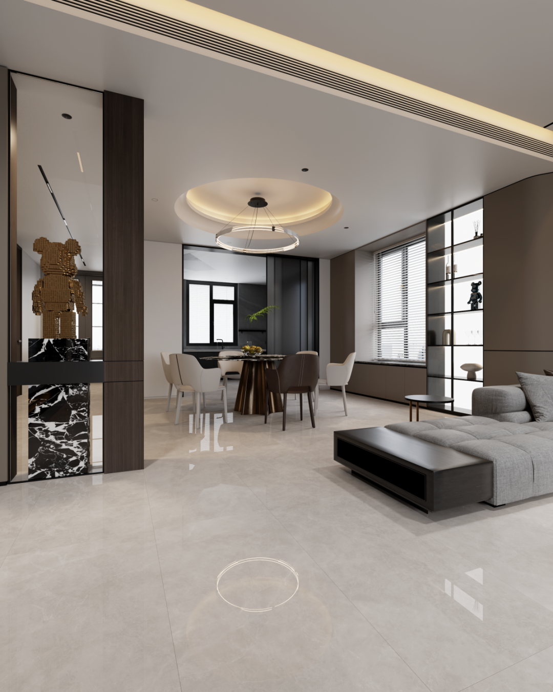 釉面温润如玉,细腻纹理层叠蔓延,为空间注入一抹纯净空濛的气息,似雪落无声,清雅中见大美。
